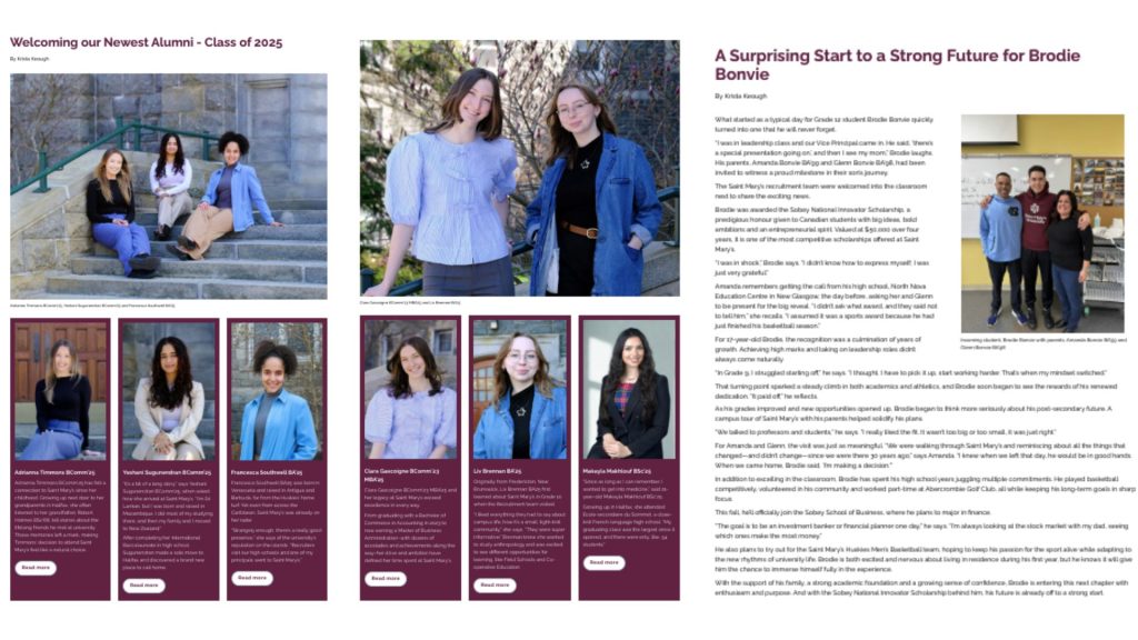 For the latest Spring 2025 issue, I interviewed six incredible female leaders who are graduating with flying colours for the feature Welcoming our Newest Alumni!. I also talked with the amazing Bonvie family and their son, Brodie, who was awarded the Sobey National Innovator Scholarship valued at $50,000 – making it one of the most competitive scholarships offered at the university. Their story, A Surprising Start to a Strong Future for Brodie Bonvie, is as heartwarming to read as it was to write.